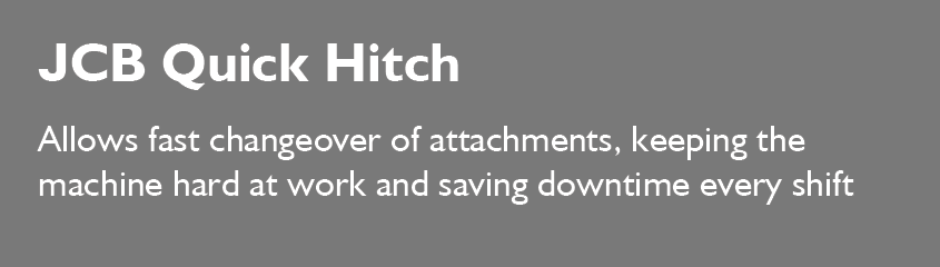 JCB’s Quickhitch and Carriages allow fast changeover of attachments, keeping the machine hard at work and saving downtime every shift. The JCB Quickhitch range includes both manual and hydraulic hitches.