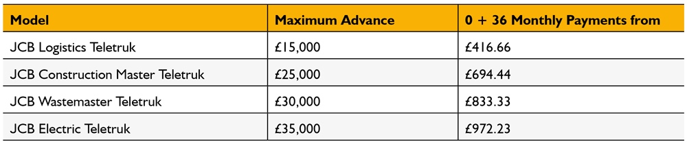 0% Interest Hire Purchase over 3 years on JCB Teletruks