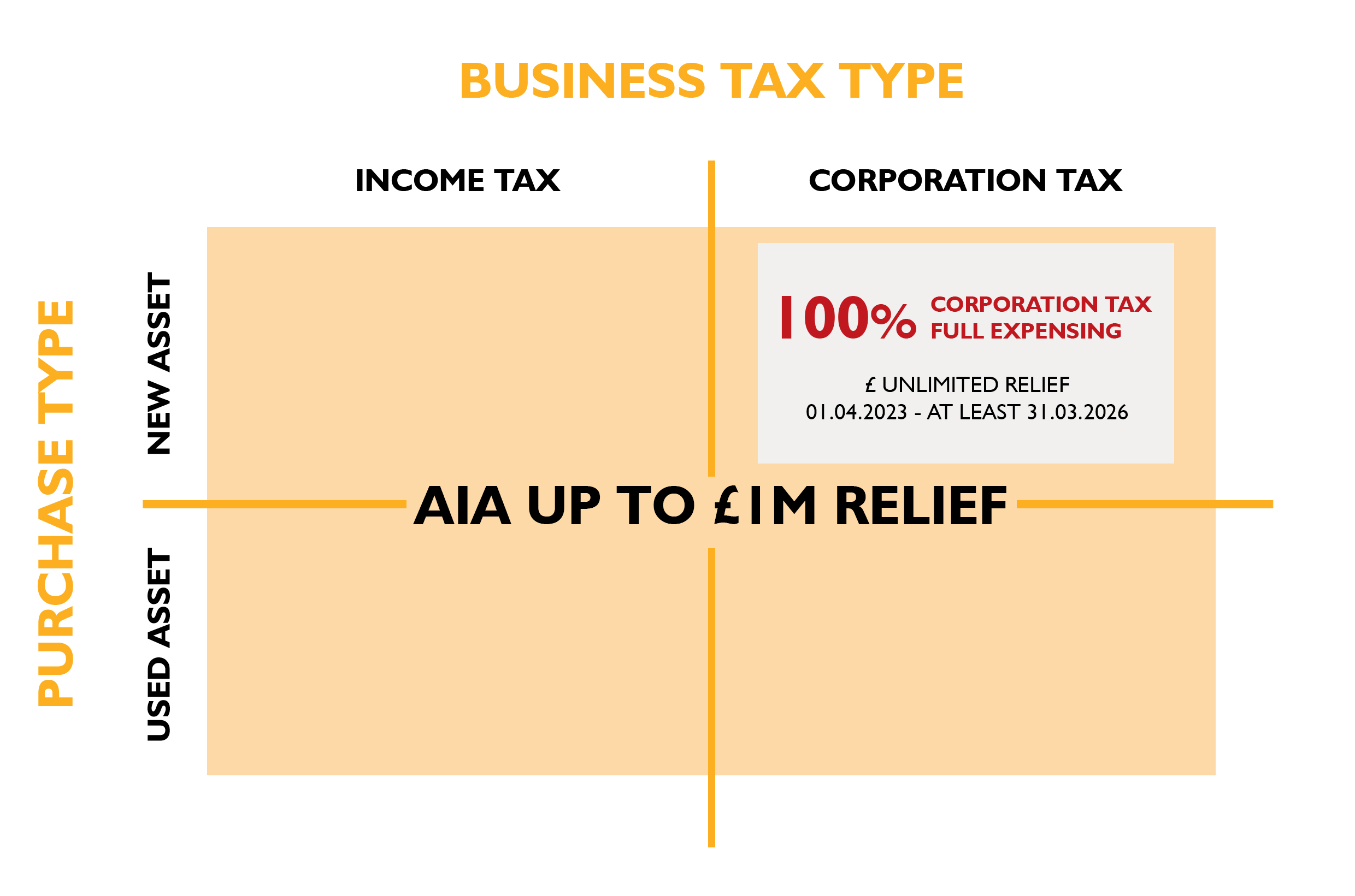 Corporation Tax Full Expensing – Unlimited Tax Relief on 100% of your Investment: From 1 April 2023 until at least 31 March 2026, unlimited investments made by companies in qualifying new plant and machinery will qualify for a 100% first-year allowance for main rate assets. This means companies across the UK will be able to write off the full cost in the year of investment, known as full expensing.