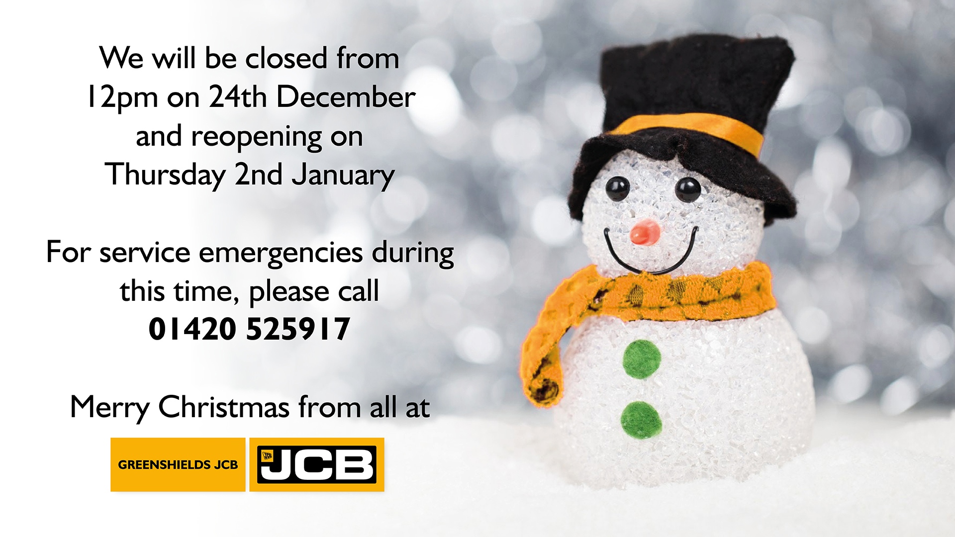 Christmas and New Year Opening Times at Greenshields JCB