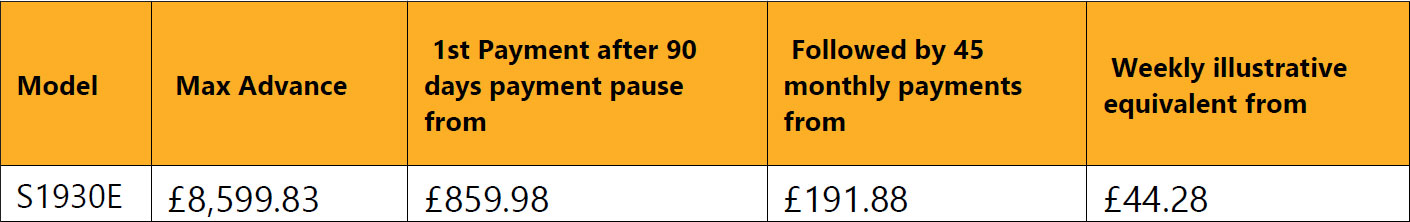 This Hire Purchase offer is available on new JCB Access models. The VAT is payable on signing, 1st payment payable after the 90-day payment pause and the 45 monthly payments will commence 30 days later (120 days after signing).