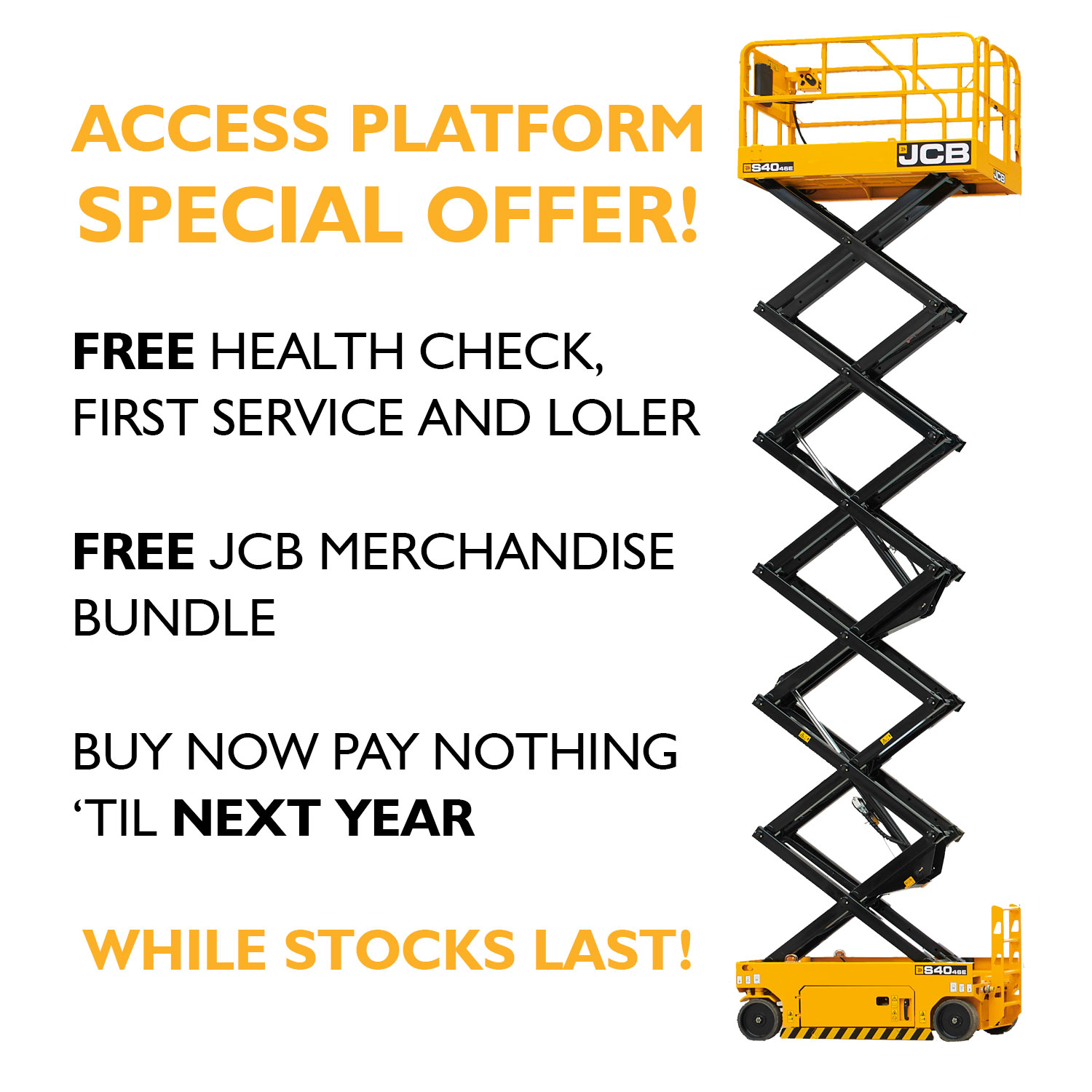This offer is available on machines ordered by 31.12.2022. Available on all new JCB Access platforms via Greenshields JCB for UK business users only. Terms apply. Maximum 10 units per customer.