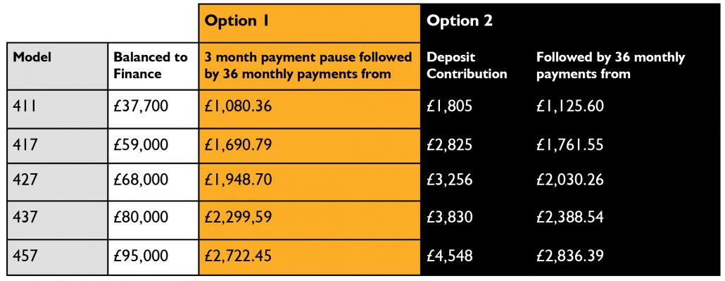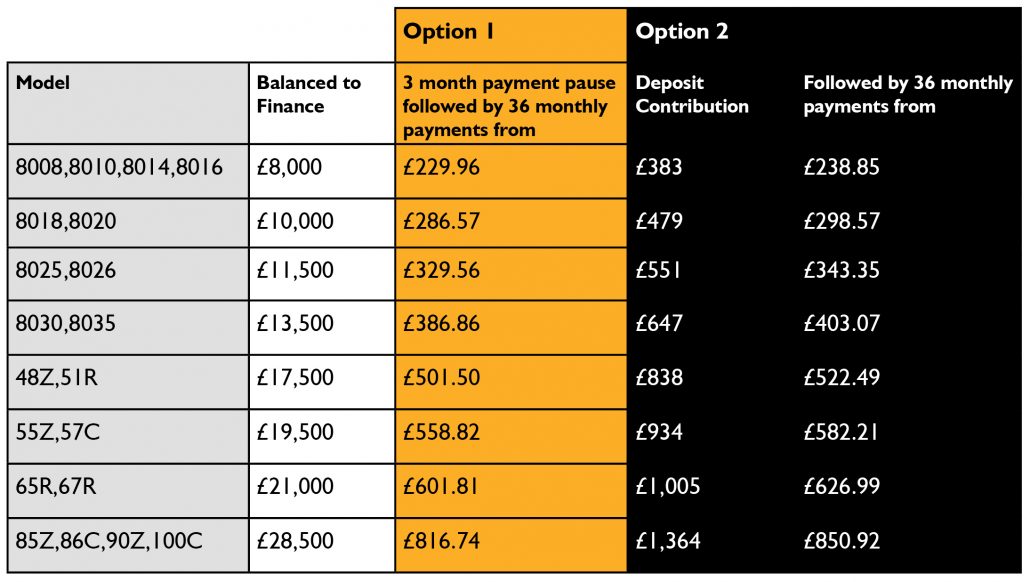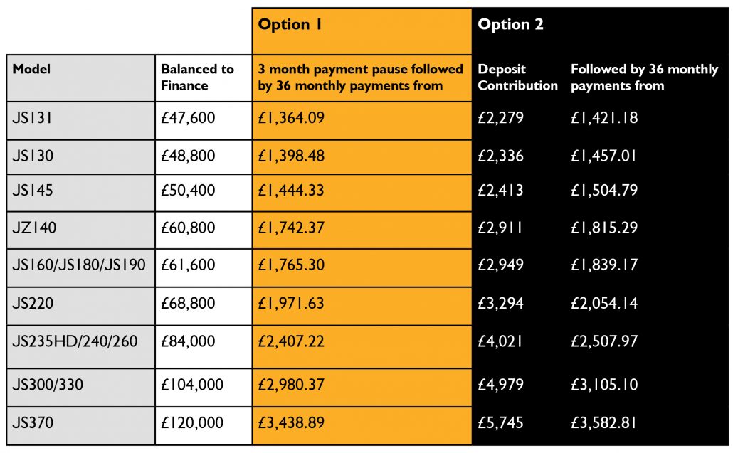- Option 2 – a deposit contribution (when financing through JCB Finance Ltd).