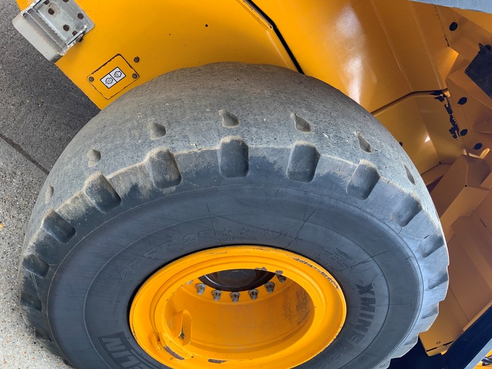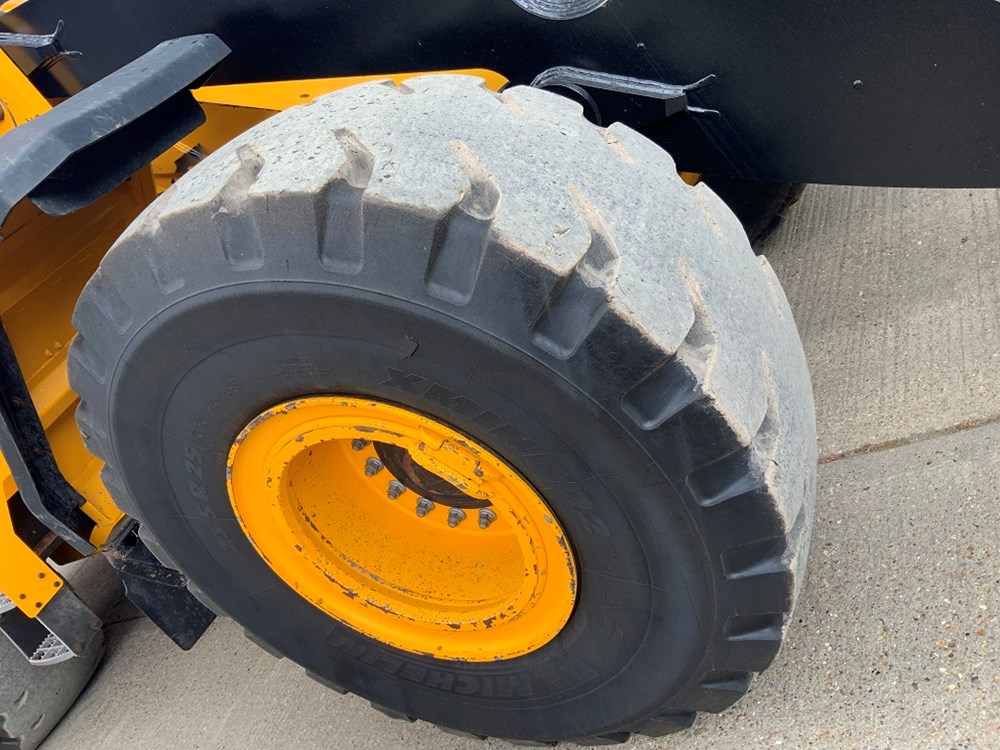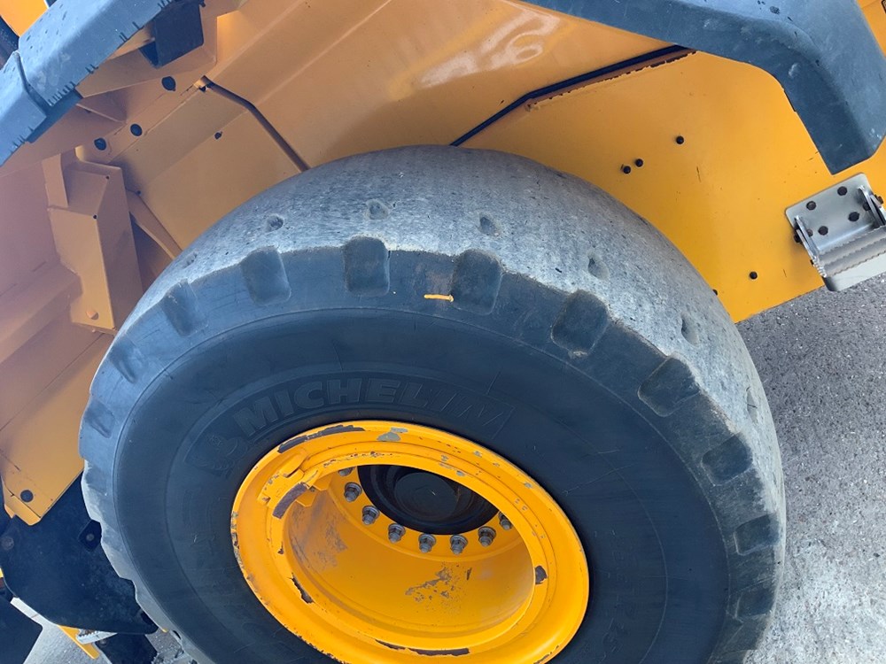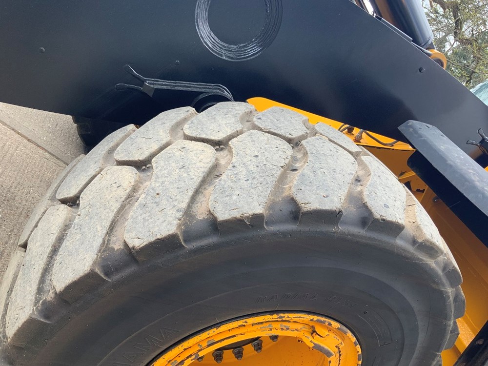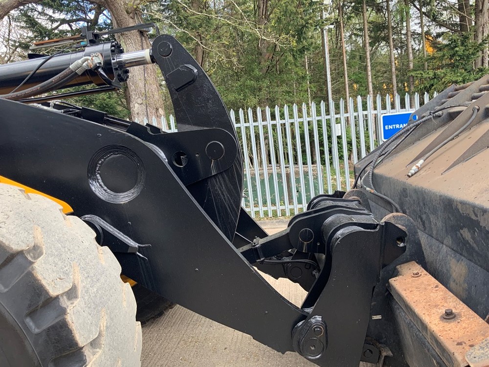 Stage V | Front Quick Hitch | 4.5m³ High‑Tip Bucket | Repainted This used 2022 JCB 457 ZX Stage V wheel loader is a high‑performance loading shovel designed for demanding quarrying, waste, recycling and bulk material handling applications. The machine has been professionally repainted, presenting exceptionally well, and is supplied with a front quick hitch and Ulrich 4.5 cubic metre high‑tip bucket, making it ideal for high‑reach loading operations. Equipped with a high‑spec cab, smooth 5‑speed transmission, and Michelin XMINED2 PRO radial tyres, the JCB 457 ZX delivers excellent traction, productivity and operator comfort. The standard height loader arms with 3‑spool joystick control and ZX autolube system ensure precise handling and reduced maintenance downtime. Key Features: Used 2022 JCB 457 ZX Wheel Loader Stage V emissions compliant Repainted machine Front industrial quick hitch with pin isolator valve Ulrich 4.5m³ high‑tip bucket Standard height loader arms 5‑speed transmission with auto‑lock front axle Michelin XMINED2 PRO 23.5R25 L5 tyres ZX autolube system UK‑spec machine (UK language pack) Cab, Safety & Specification: High‑spec enclosed cab Climate control with ATC Full cab with carbon air intake filter Full wheel fenders Hydraulic reverse cooling fan