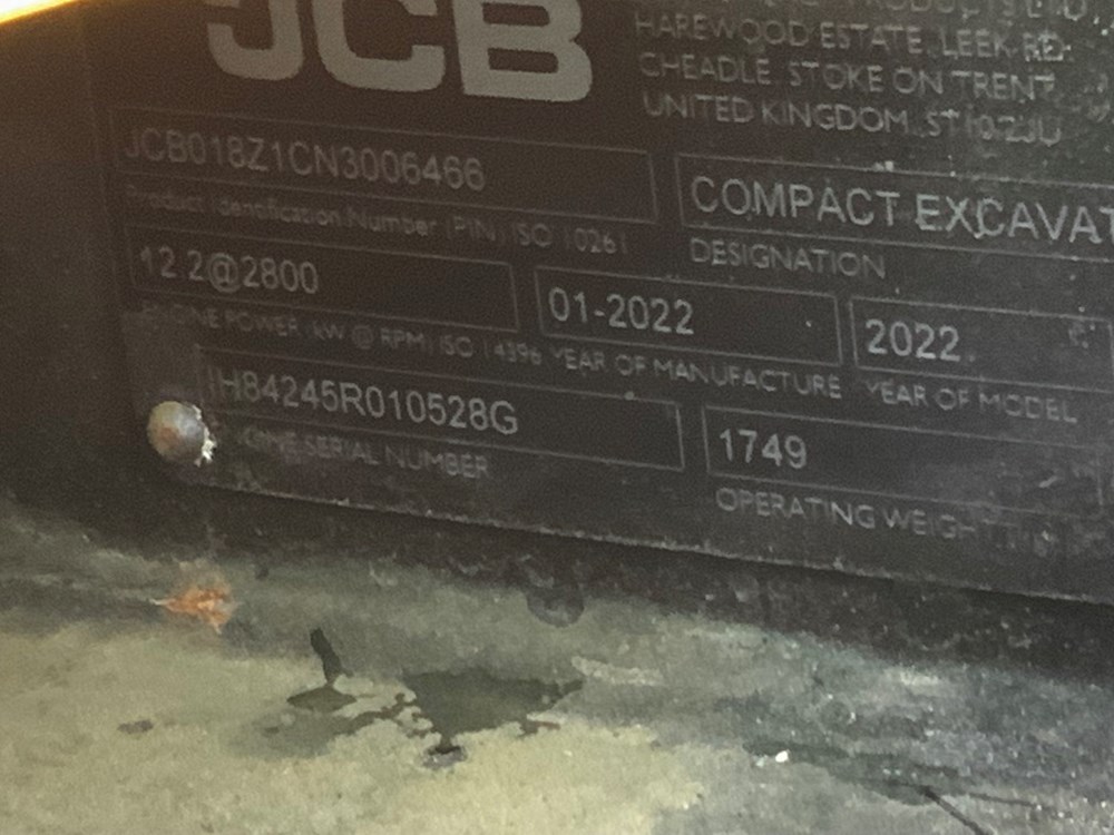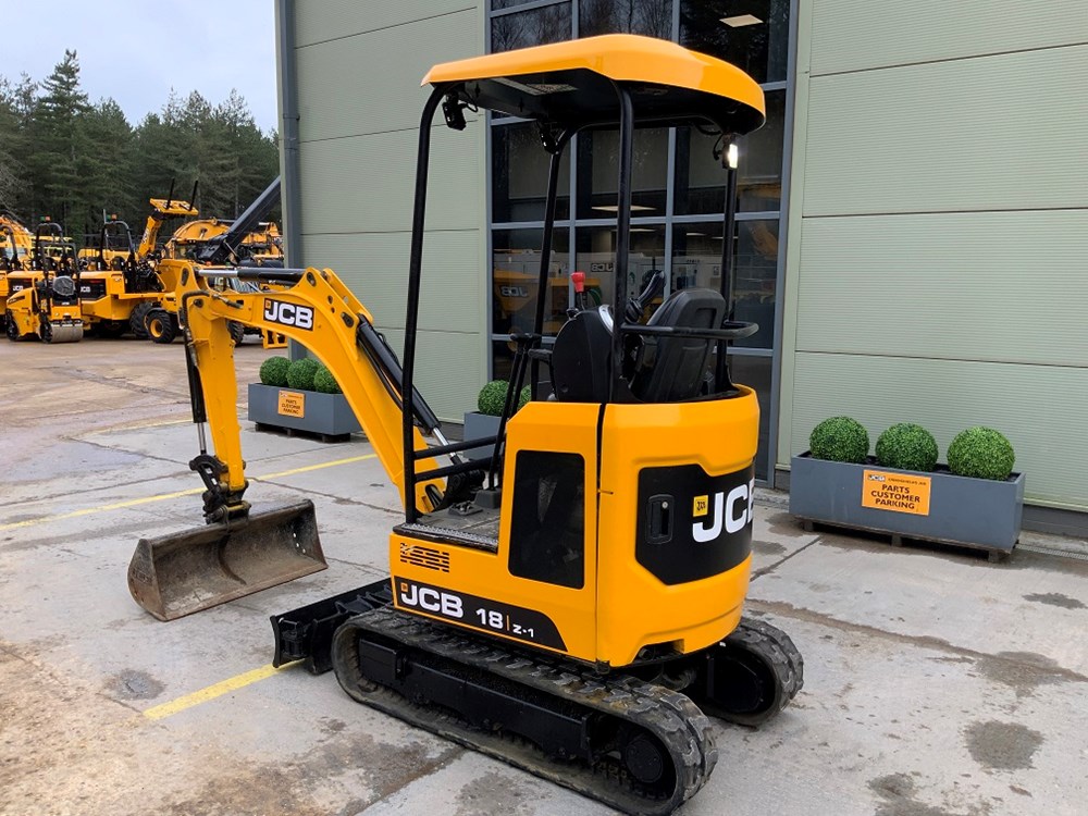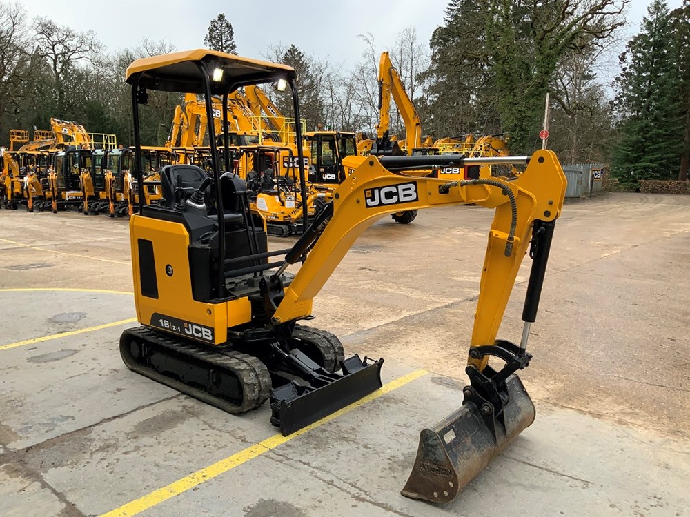 Expanding Tracks | Twin Speed | JCB Approved Used Warranty Available. This used 2022 JCB 18Z‑1 mini excavator is a compact zero tail swing machine designed for restricted‑access construction, landscaping and utility work. Equipped with a retractable undercarriage with expanding tracks and twin‑speed tracking, the 18Z‑1 offers excellent manoeuvrability, stability and productivity across a wide range of site conditions. The machine benefits from high‑flow, double‑acting auxiliary hydraulics, making it suitable for a variety of attachments. Warranty is available through the JCB Approved Used programme, providing additional peace of mind for buyers. Key Features: Used 2022 JCB 18Z‑1 Mini Excavator, Zero tail swing design, Expanding tracks (retractable undercarriage), Twin‑speed tracking, High‑flow, double‑acting auxiliary hydraulics, 950mm (37”) dipper arm, Standard dozer blade with swing‑out extensions, Auto kick‑down track motors, Short‑pitch rubber tracks, UK‑spec machine, JCB Approved Used warranty available, Operator Area, Safety & Extras: 4‑post ROPS / TOPS / FOPS certified canopy, Front polycarbonate screen protection, ISO control pattern, Static vinyl operator seat, Halogen work lights (2 front, rear, boom and interior), LED amber beacon, Seat‑engaged green safety beacon, LiveLink telematics, Pin‑pad immobiliser, CESAR Datatag security system, Battery isolator