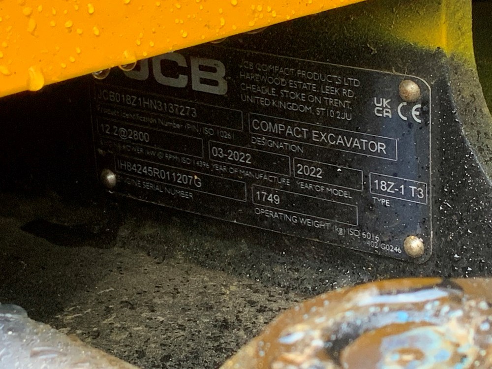 Used 2022 JCB 18Z‑1 Mini Excavator