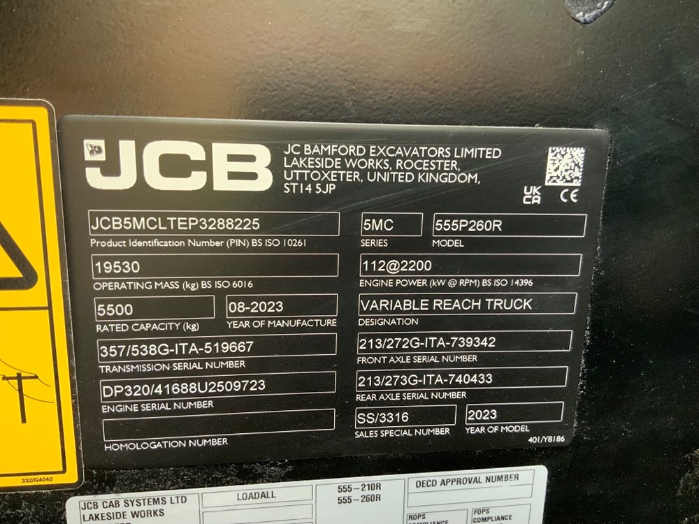 The machine benefits from JCB standard manufacturer’s warranty until 06/08/2026 or 2,000 hours, providing additional peace of mind. Available to UK business users only.