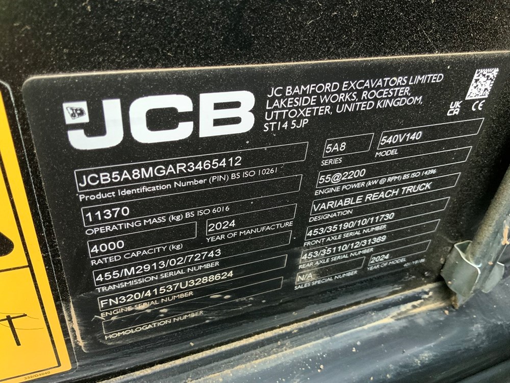 This used 2024 JCB 540V140 telehandler is a compact, highly manoeuvrable machine designed for urban construction, landscaping, industrial and confined‑space applications. Powered by a 55kW Stage V diesel engine, this model delivers strong performance with reduced emissions and efficient fuel use.
